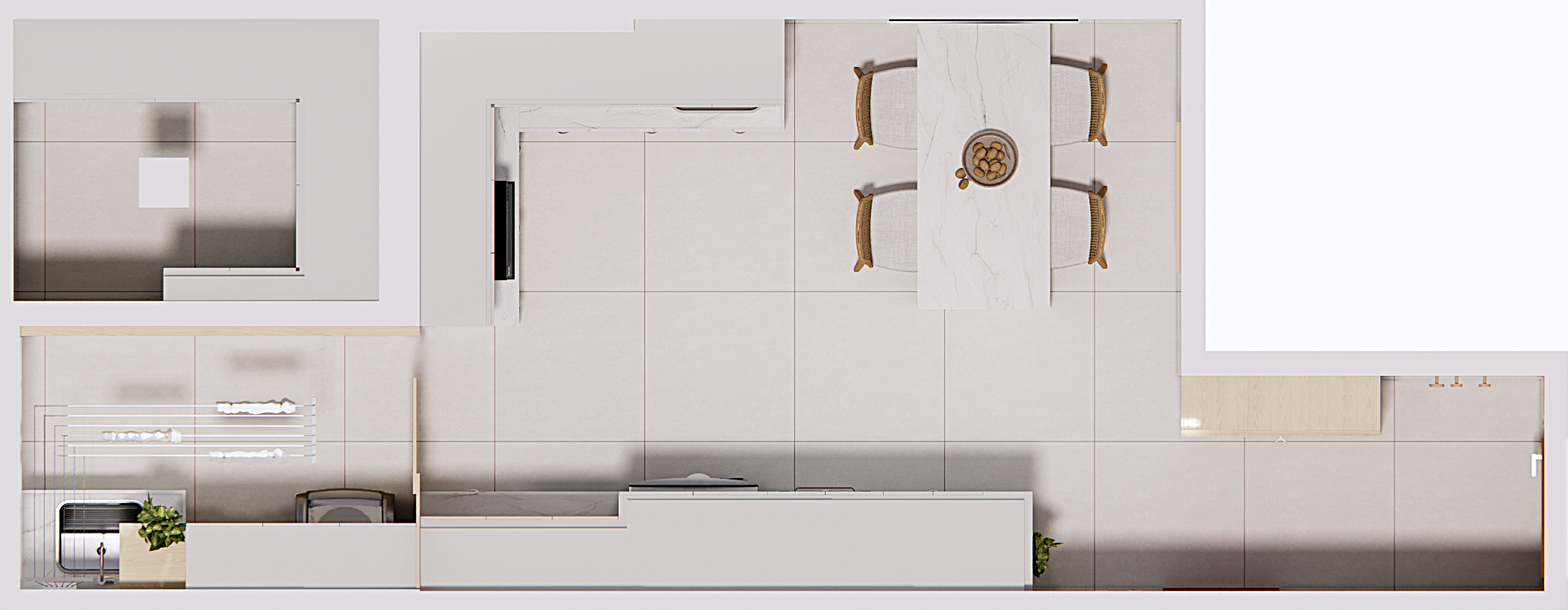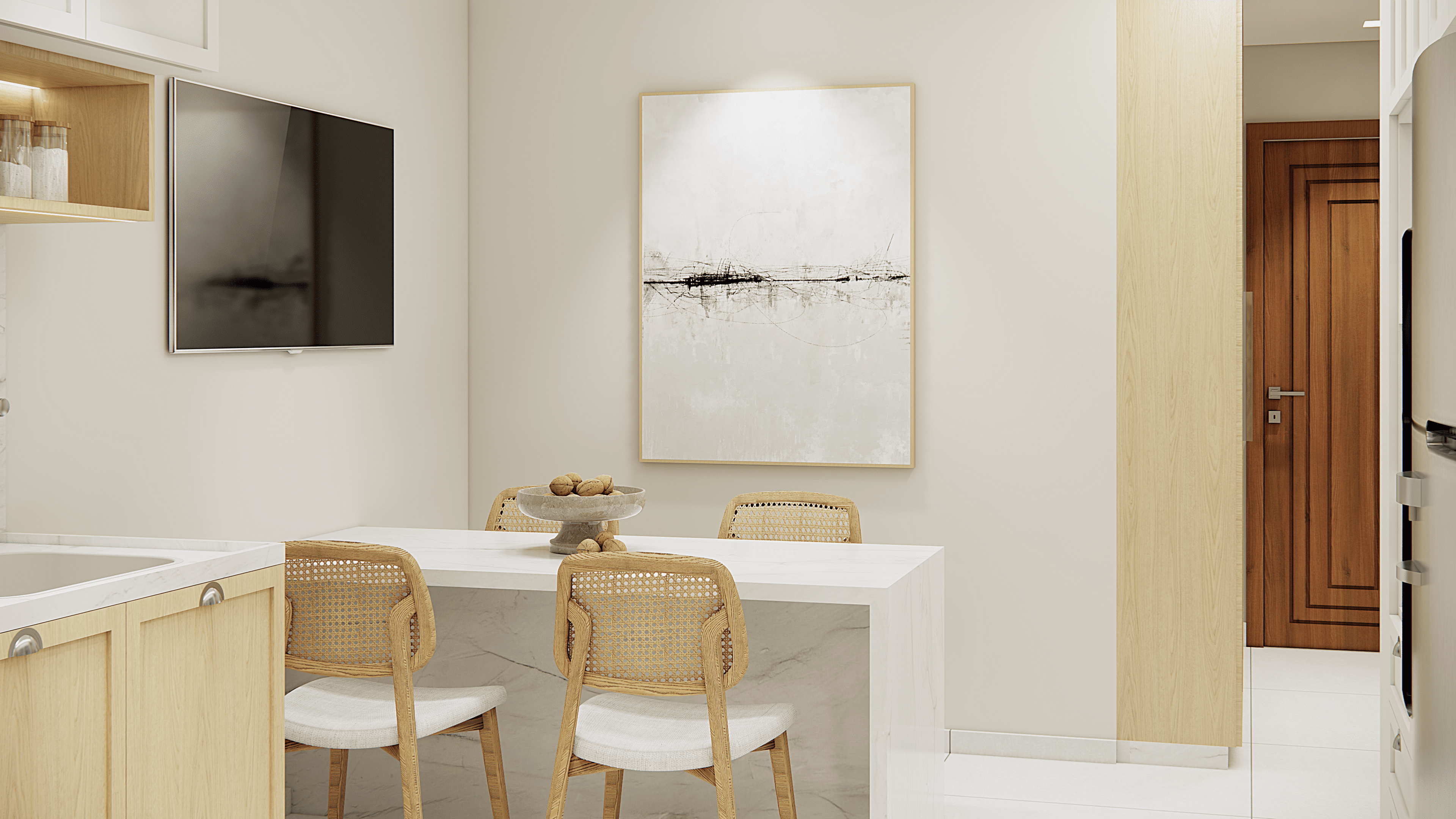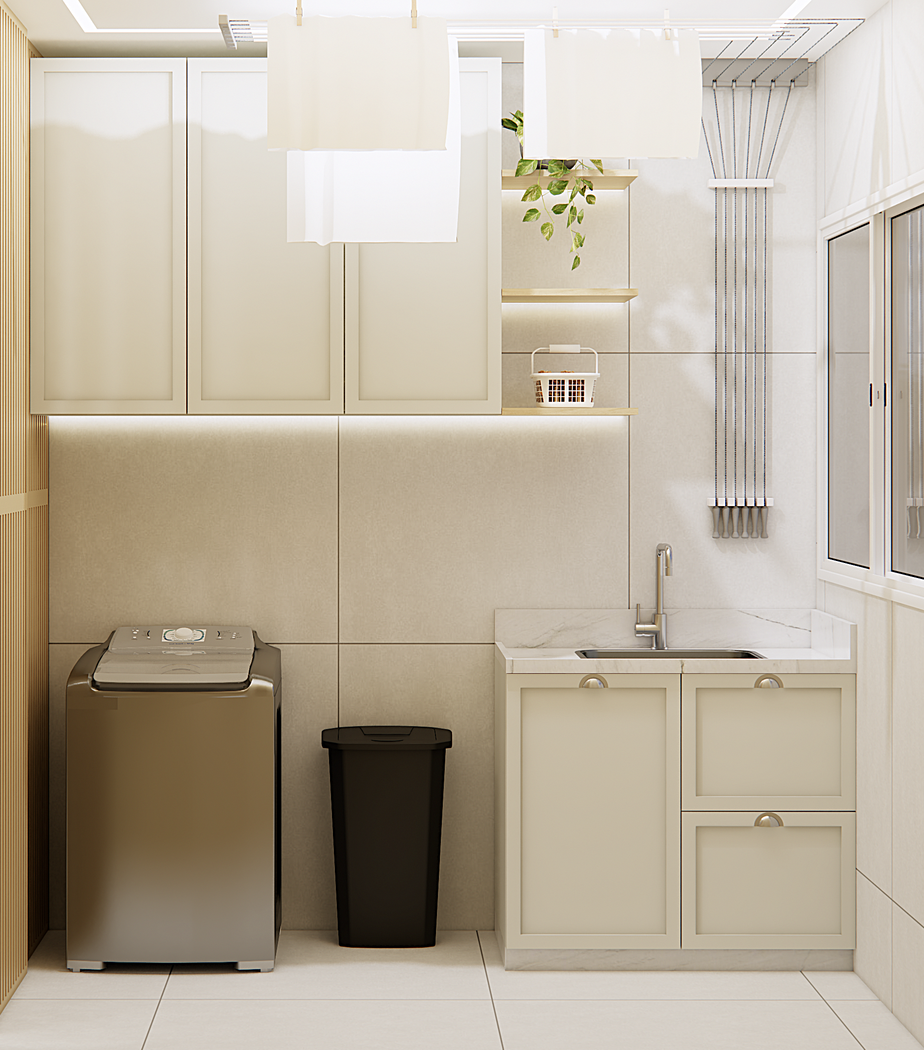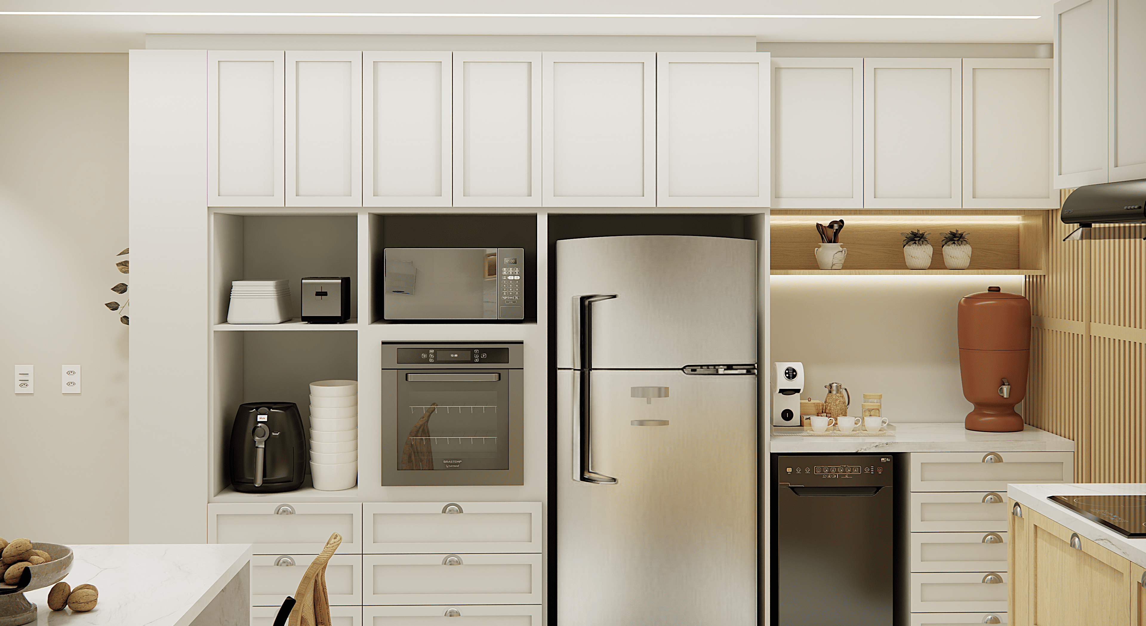 O ponto de partida deste projeto foi a escuta atenta às necessidades da cliente, que buscava transformar a cozinha em um espaço mais claro, funcional e agradável no dia a dia. Um dos principais incômodos era a falta de iluminação natural, já que a cozinha era isolada da área de serviço, de onde vinha a única entrada de luz do ambiente.